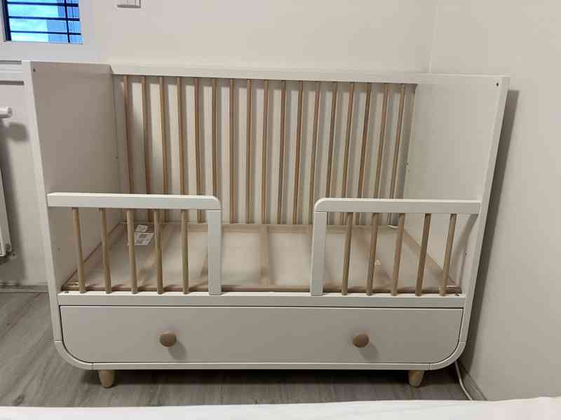 Vydrží opravdu dlouho - od narození do cca 3-4 let věku dítěte díky nastavitelnému roštu do třech výšek a dvěma druhům bočnic (viz fotky). Má také praktický a prostorný šuplík např. na lůžkoviny či hračky.