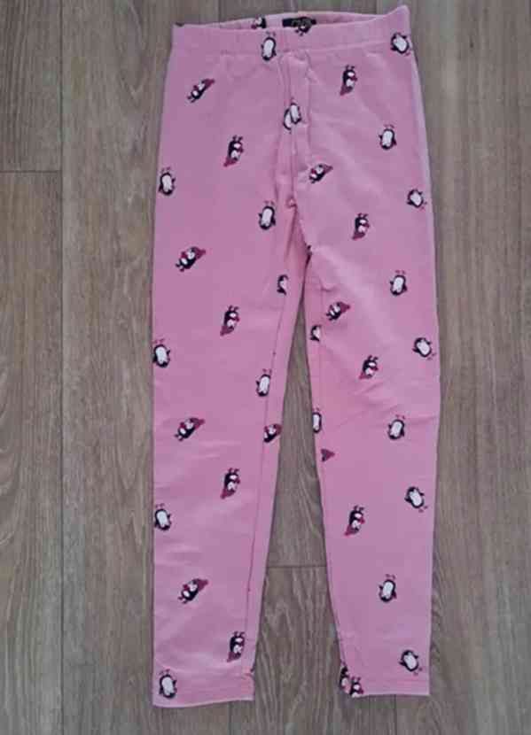 Dívčí zateplené legíny s tučňáky, velikost 128. Pěkný stav.
