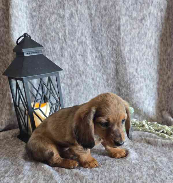 Je tu vrh 8 krásných dlouhosrstých miniaturních jezevčíků! Všichni jsou plní života a každé ráno se probouzejí s veselým výrazem ve tváři! Všichni milují pořádný souboj, ale jakmile se unaví, všichni se mazlí a obývají říši snů. Mnoho z nich má krásné barvy a vzory, což je docela unikátní! Jejich maminka, krásná červenostříbrná kropenátká (dlouhosrstá), se o svá štěňata skvěle stará! Jejich tatínek Teddy je dlouhosrstý, černý s pálením miniaturní jezevčík.