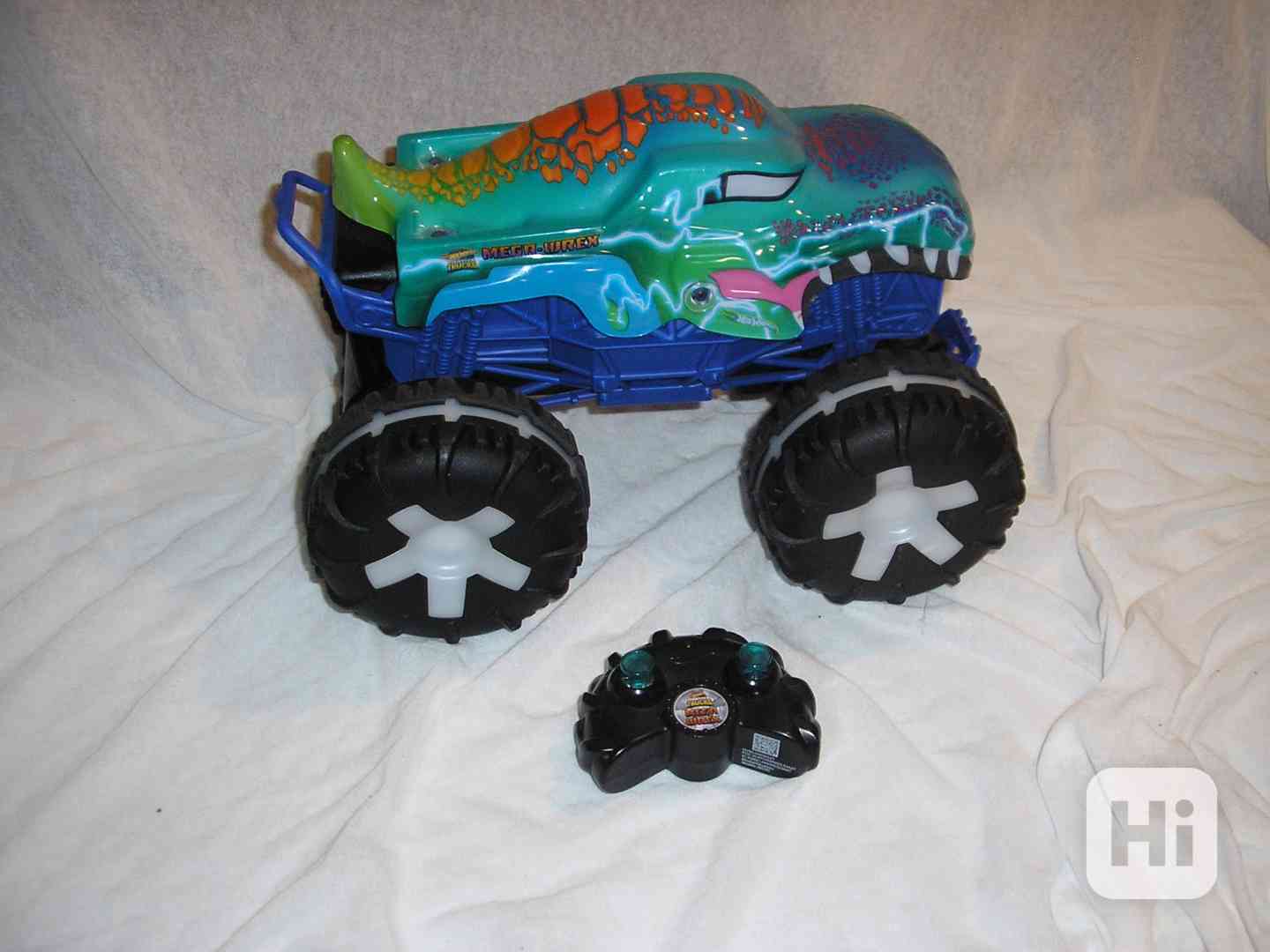 Dálkově ovládané auto, 1:15, tři různé režimy.Legendární Hot Wheels Monster Trucks.řve a nabíjí svůj měřič vzteku, každý náraz aktivuje světla a zvuky. V režimu crush intenzita zvuků se zvyšuje s každou srážkou. Stisknutím a podržením akčního tlačítka udělá jede dál po dvou kolech....