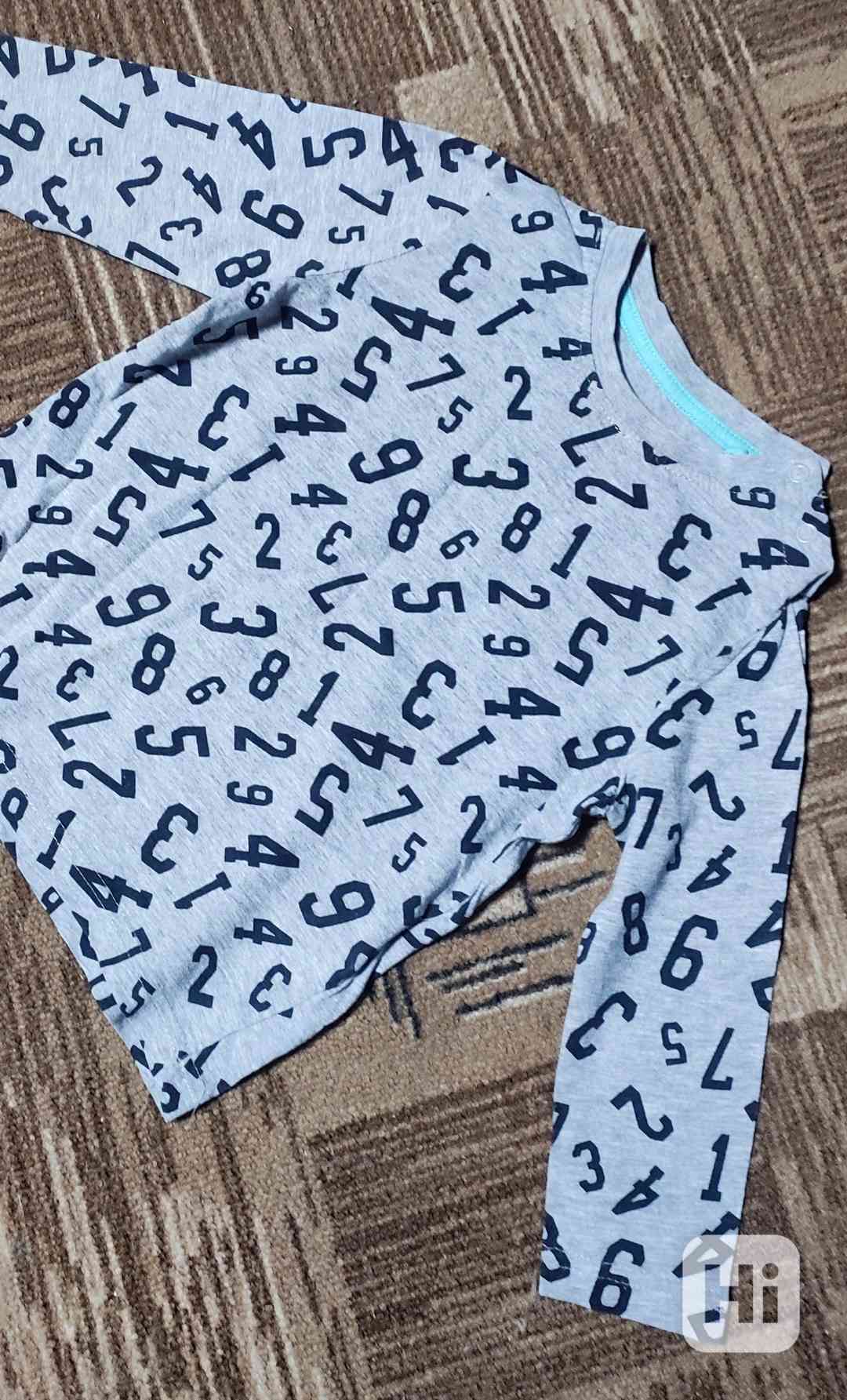 Šedé tričko s dlouhým rukávem, Lupilu, vel. 86/92 (12-24 měs.). Délka cca 38 cm, šířka cca 2x32 cm. 90% bavlna, 10% viskóza. Ve spodní části trička maličký flíček, viz foto, je vidět minimálně.