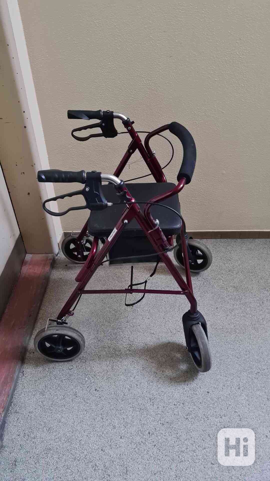 Prodám chodítko s kolečky, minimálně používané v perfektním stavu značky Roma Medical s nosností 114kg. Pod sedákem je odnímatelný textilní úložný box.