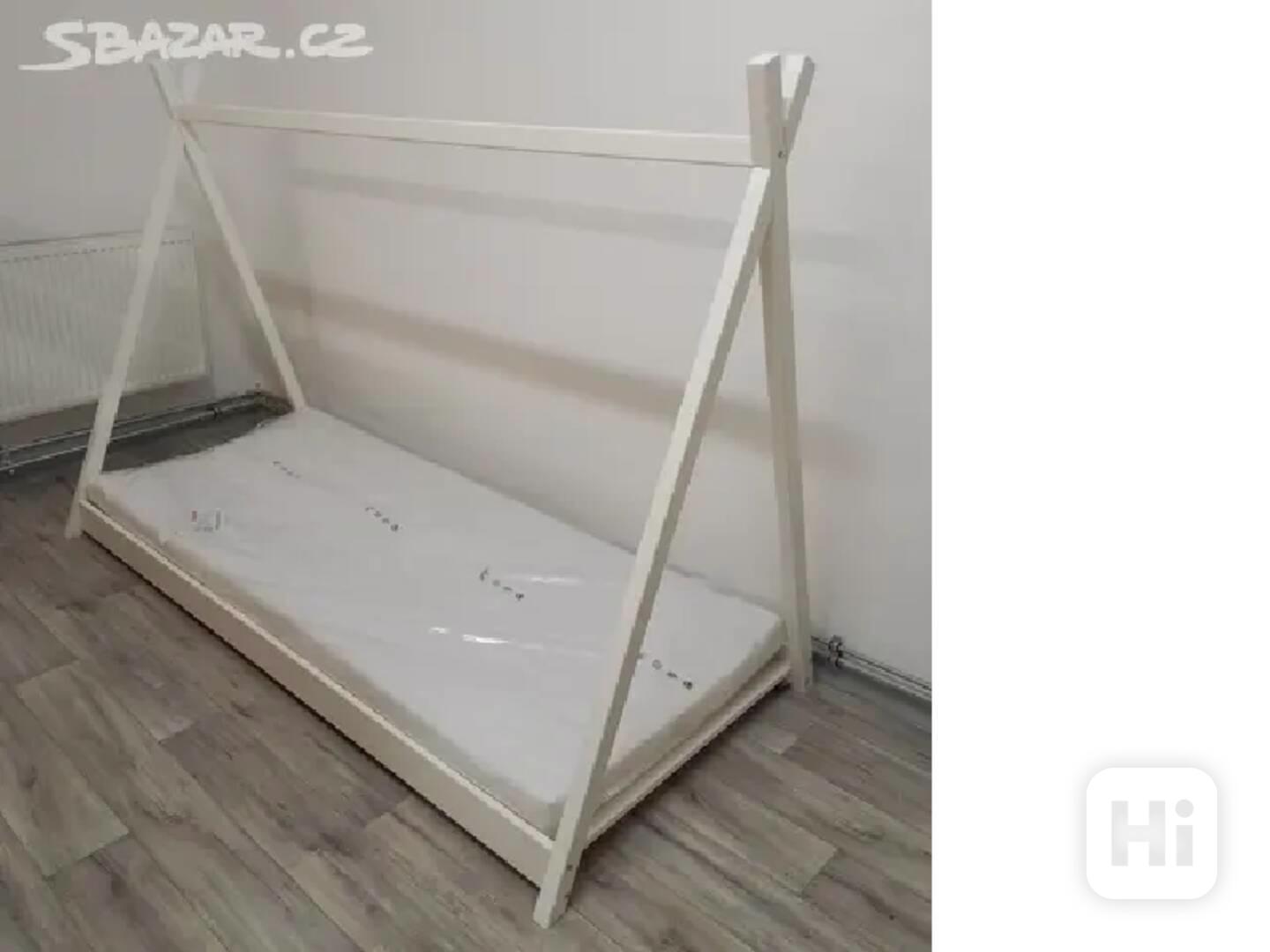 Postel TIPI je celá vyrobena z kvalitního borovicového dřeva. V noci postýlka slouží jako pohodlné a bezpečné místo na spaní se zaoblenými hranami a matrací umístěnou v nízké výšce. Přes den se může proměnit ve stan, což je skvělé místo pro hraní dětí. Sada obsahuje: bílá postel, dřevěný rám, sada montážních prvků, montážní návod. Matrace a ostatní bytové doplňky ne jsou součásti výbavy postele. Rozměr postele pod matraci 200x90 cm.