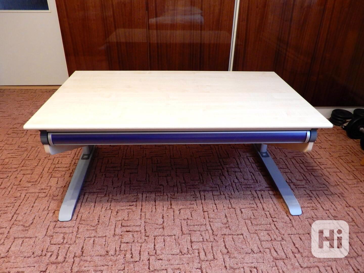 Prodám dětský rostoucí stůl Moll Winner, nastavitelná výška stolu, naklopitelná pracovní plocha, měnitelné barevné prvky, manuální nastavení výšky stolu v 10 úrovních. Je vybaveno dětskou pojistkou. Výškově nastavitelné rozmezí je 53 až 82 cm (odpovídá 112 – 200 cm výšky dítěte/dospělého člověka). Cena: 10.000kč. Osobní odběr.