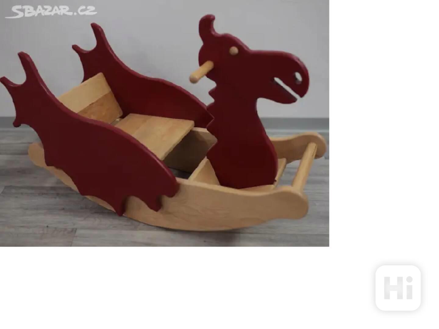 Houpačka dřevěná pro děti vyrobena ve tvaru malého draka.