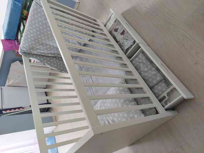 Dětská postýlka jako nová,skoro nepoužívaná,pro děťátko od narození do dvou let. Madrace je zvedací. Pouze osobní odběr. Mohu za 500kč přidat nepoužité peřinky a povlečení. Vnouček v ní byl 2x.