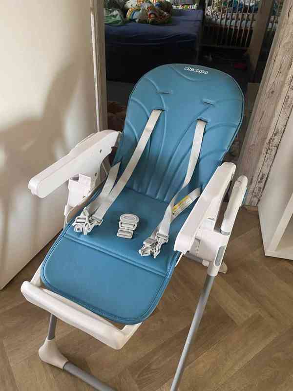 Dětská židlička pro nejmenší od 1 roka do cca 4 let dítěte je nová dostali jsme pod stromek na některých místech odřená viz foto. Mohu dovézt po dohodě okolí Slaneho.