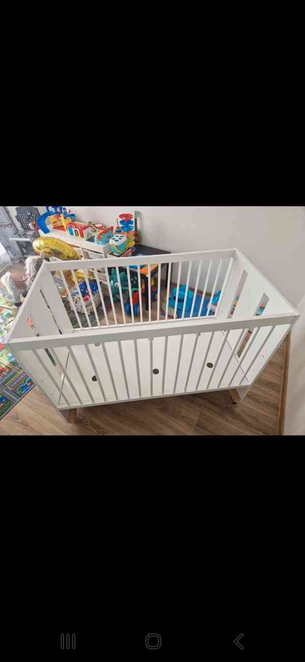 Prodáváme krásnou postýlku, elegantní design v bílé barvě a s dekorem dubu