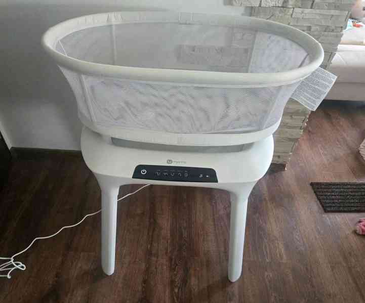 MamaRoo Sleep postýlka, v zaruce do 06/2026, funguje s monitorem dechu, pomáhá miminku rychleji usnout a taķé déle spát. Díky 5 jedinečným pohybům, bílému šumu, tlukotu srdce, šumění atd a ovládání přes aplikaci (můžete ovládat z postele či z jiného pokoje) napodobuje různé druhy houpání – monitor dechu s postýlkou funguje bez problému.