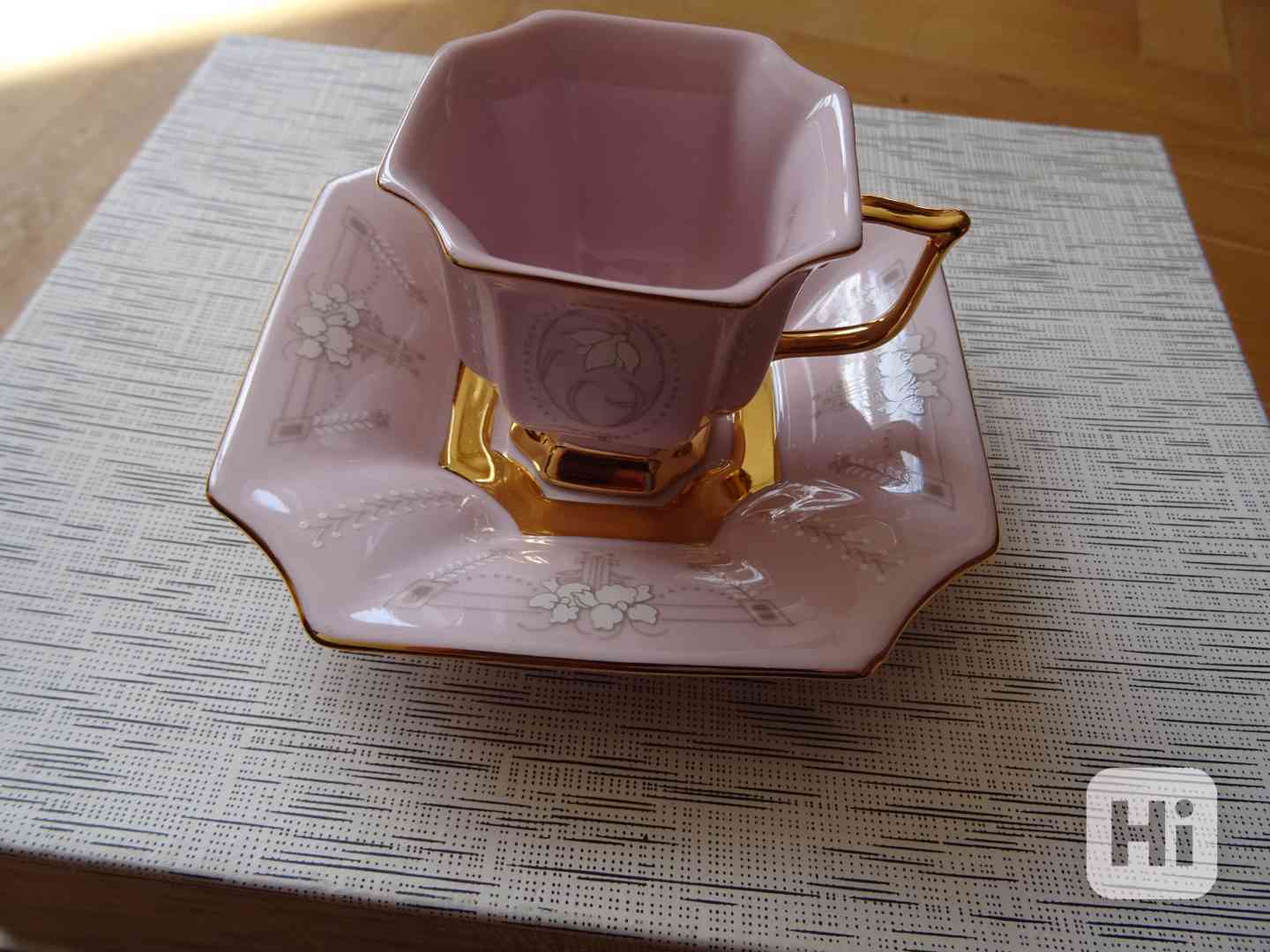 Prodám ručně malovaný karlovarský porcelán, zlacený. Jde o kávový hrneček s podšálkem, nikdy nepoužitý, v originálním balení.