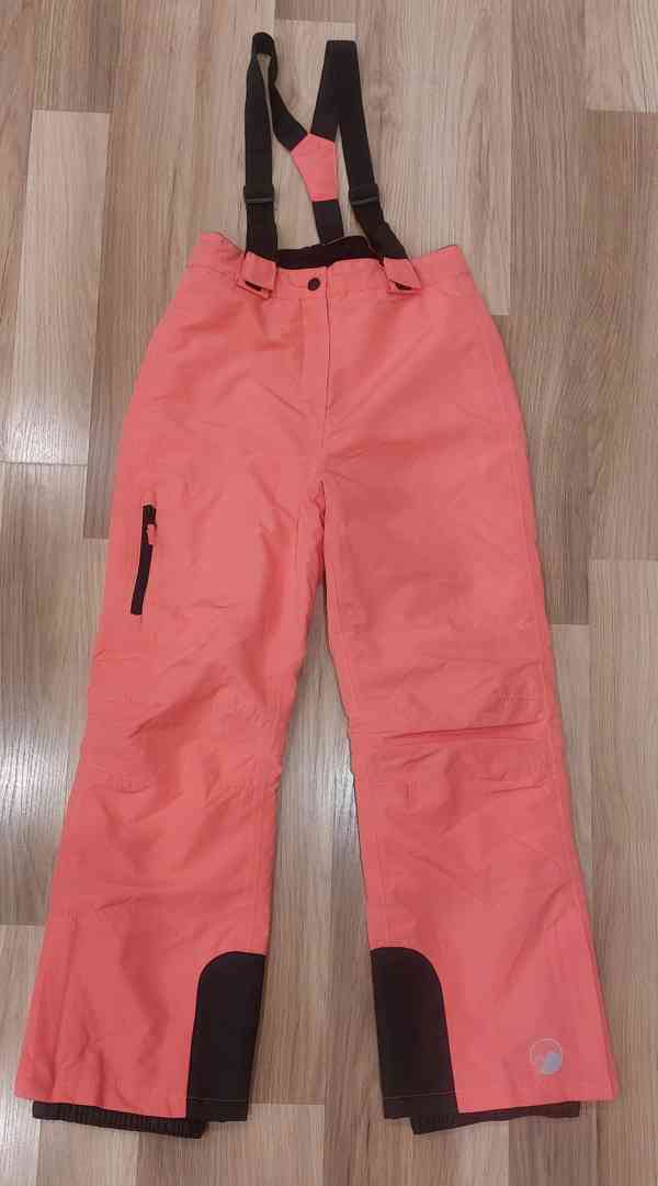 Prodám lyžařské kalhoty zn. Crivit, vel.146/152, odstín růžové (lososová?), refl.prvky, s kšandami, celková délka 97cm, pas 35cm, šírka nohavice 25cm. Jako nové.