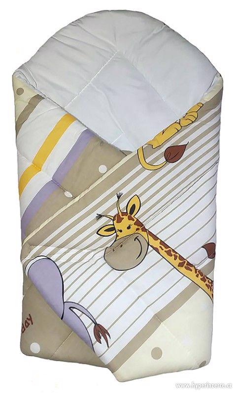 Zavinovačka je šitá z kvalitní bavlny, vyplněná polyesterovým rounem. Zavinovačka je cca 8 cm od krajů prošita a tím je zabráněno pohybu výplně při praní. Zapínání zavinovačky je na suchý zip.