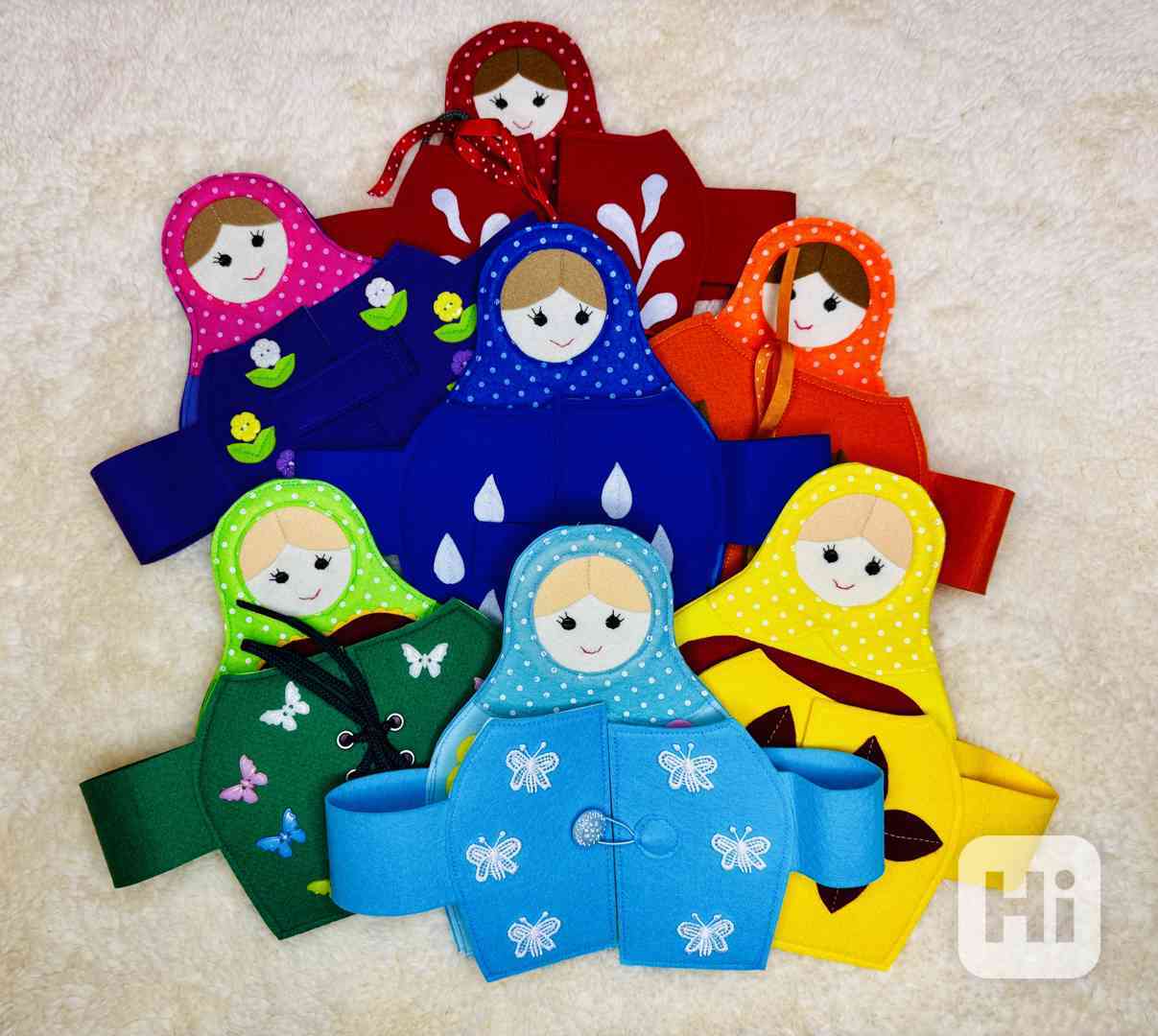 Vzdělávací hračka typu Montessori, kompaktní, 7v1, vhodná na cesty. Rozvíjí mělkou motoriku, počet do 5, pojmy : malý větší velký, barvy, různé druhy zapínání, hra chytání rybiček, rozlišování zelenina-ovoce a pod. Ruční výroba . 1+ vhodná jako dárek