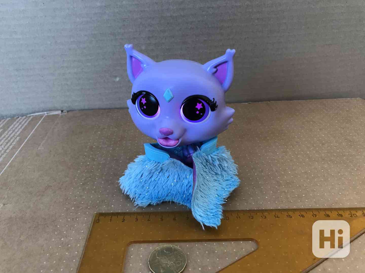 Vydává celou škálu rozmanitých a legračních zvuků. Oči různobarevně svítí.
