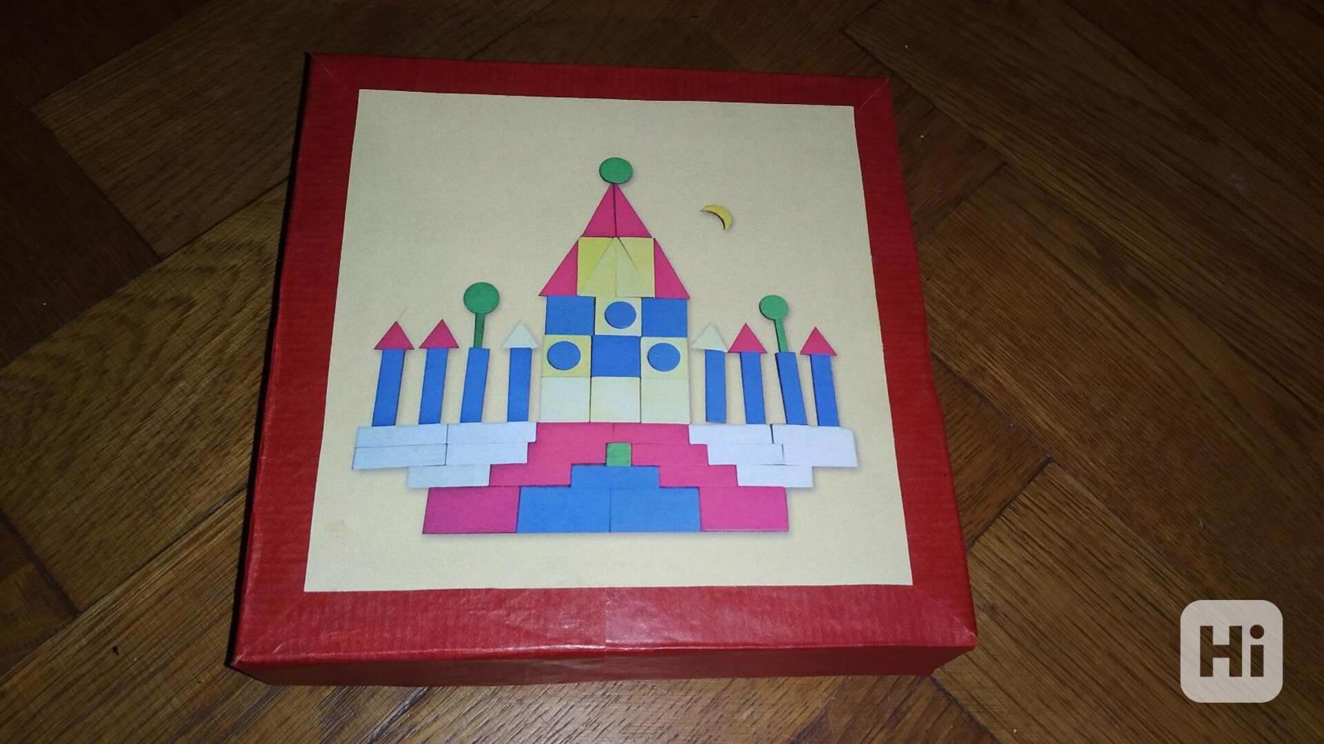 Nabízím retro dřevěnou stavebnici na skládání objektů. Nová krabička.