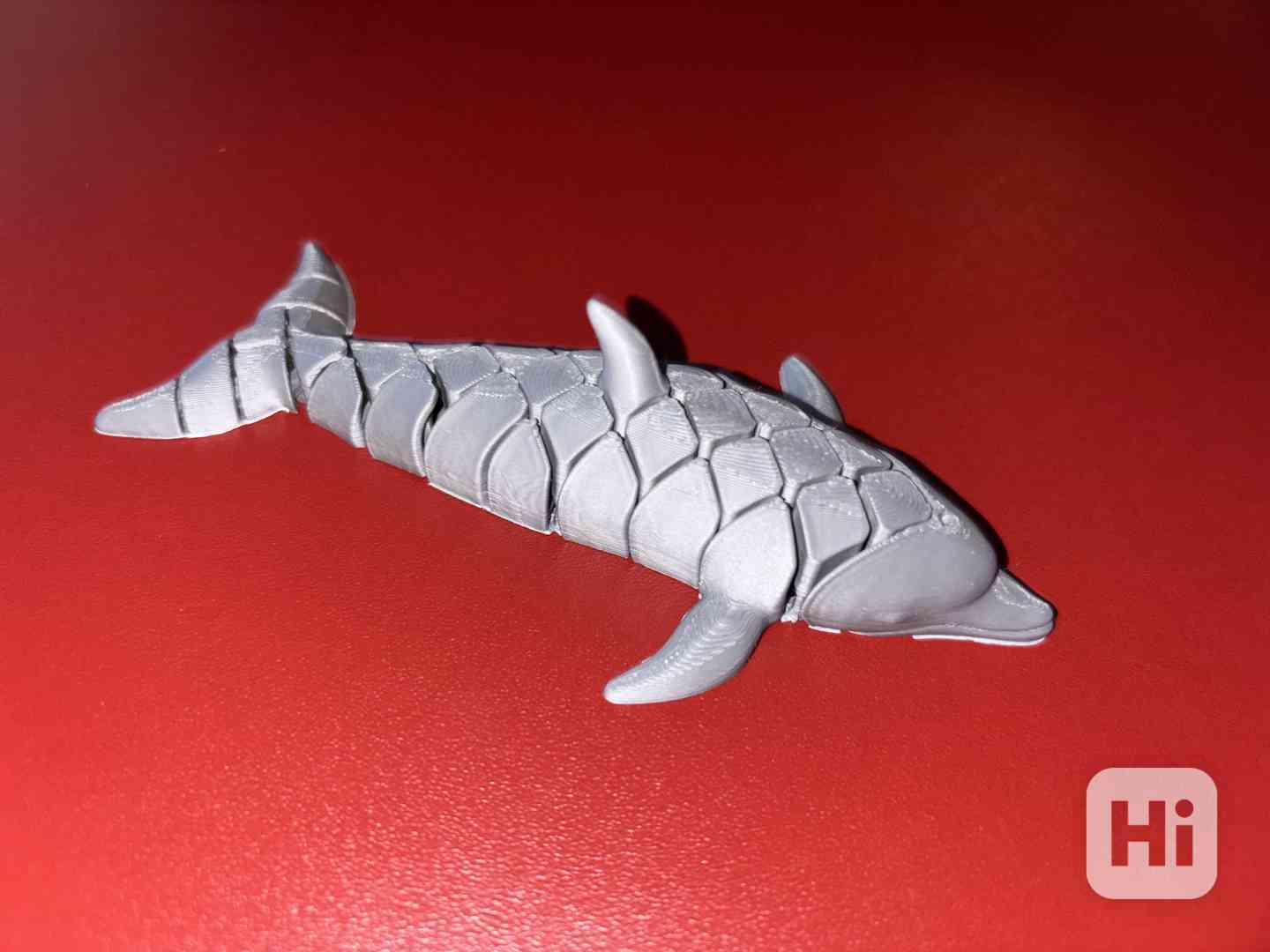 Díky pohyblivým článkům lze delfína ohýbat a natáčet do různých pozic, což z něj dělá nejen dekoraci, ale i zábavnou antistresovou hračku.