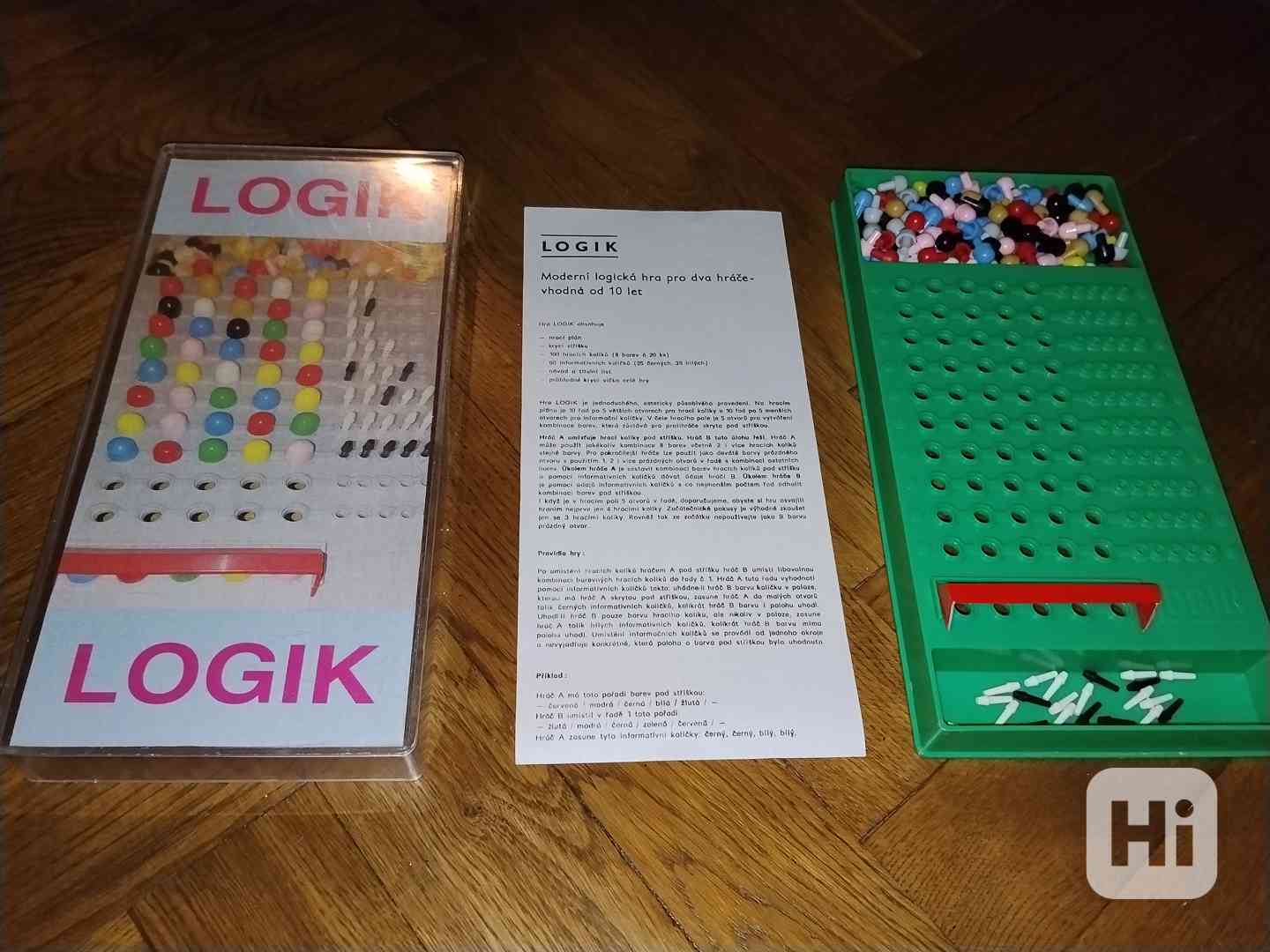 Nabízím zachovalou retro hru pro cvičení logického myšlení . Červená stříška je nově vyrobená, ale funkční. Vršek víka je na straně ulomený. Nafoceno. Snížená cena.