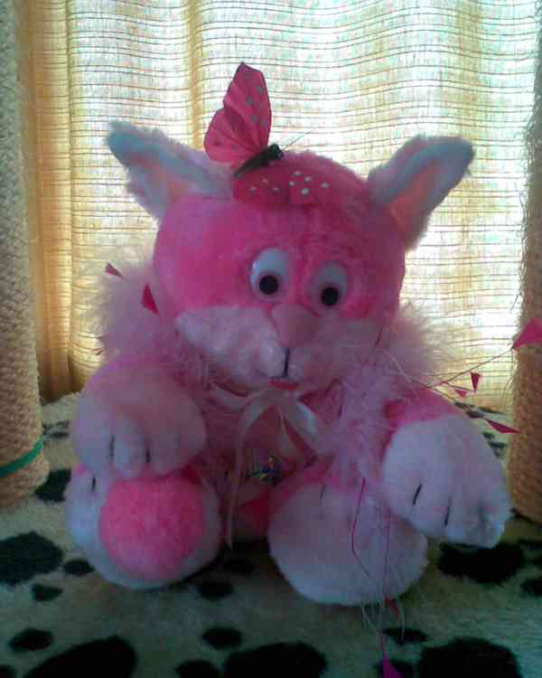 Použitá mikropříze Alize, plněno dutým vláknem s atestem. Výška 24 cm. Zajíček vč. oušek 11 cm.