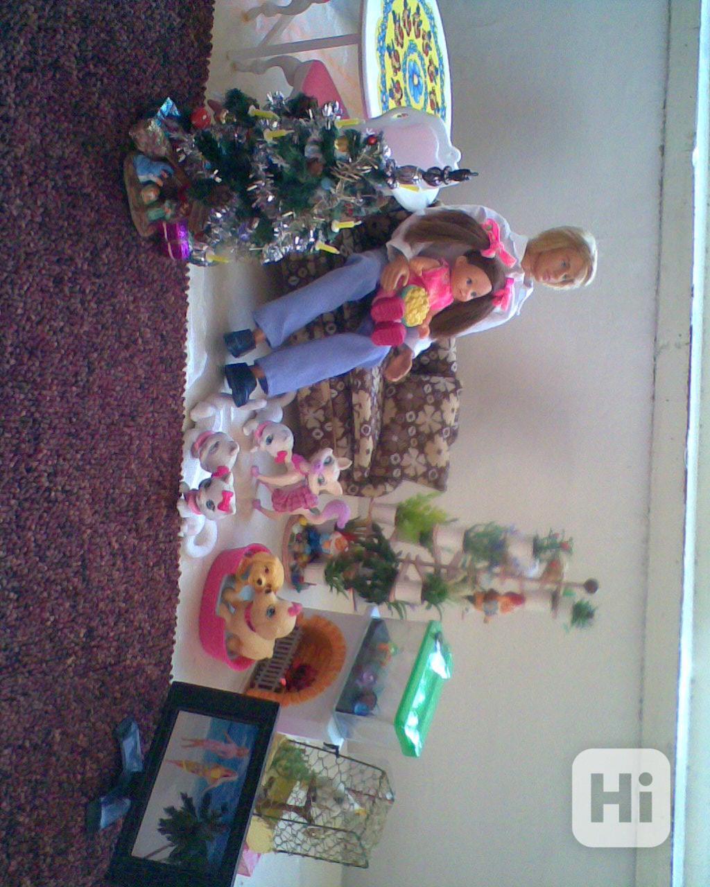 ručně dělaná rozkládací sedačka, květinový stolek, Vánoční stromeček, krb, akvárium, papoušek v kleci, televize, možno přidat panenky, zvířátka