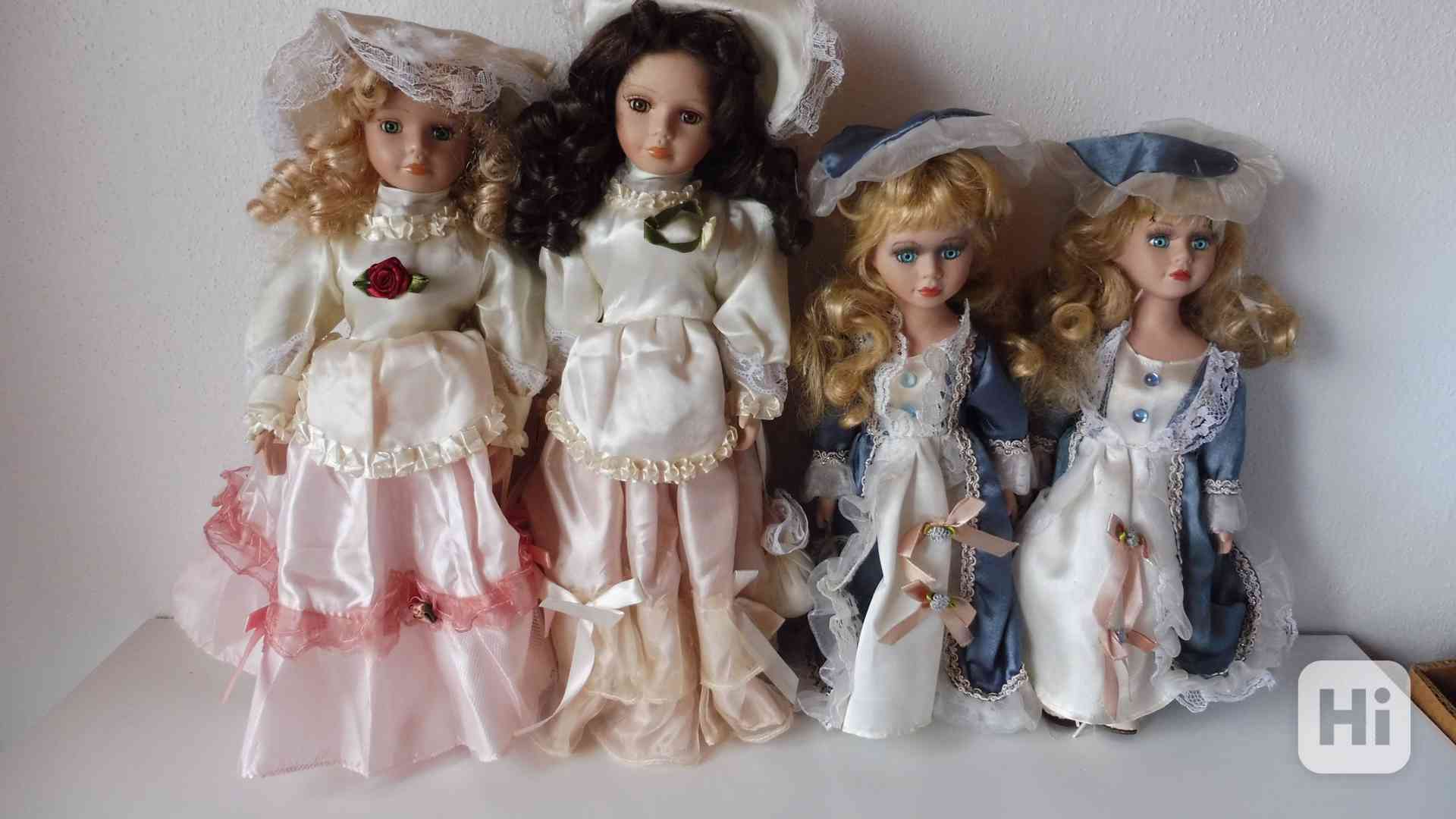 Panenky s porcelánovou hlavou, oblečené v dlouhých šatech, s kloboukem, se stojánkem, velké 32 + 38 cm, kus za 200,-Kč, všechny za 500,-Kč. V případě zájmu pište prosím na email Sobotka.Vl@seznam.cz. Aktualizace 23.11.2025