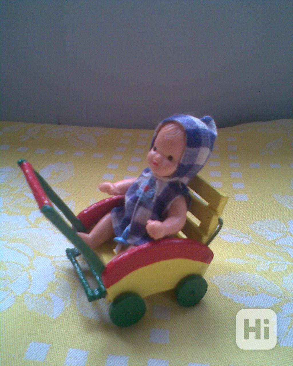 retro dřevěné kočárky po renovaci s panenkami Igra a mrkací