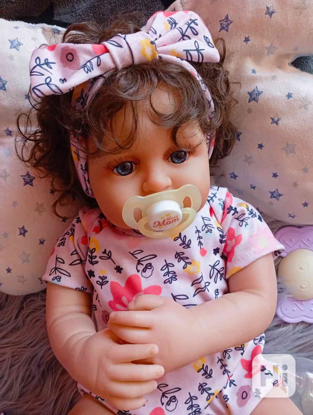 Nabízím holčicku s látkovým tělíčkem velkou 48 cm, s delšími kudrnatými vlásky, modrýma očima.