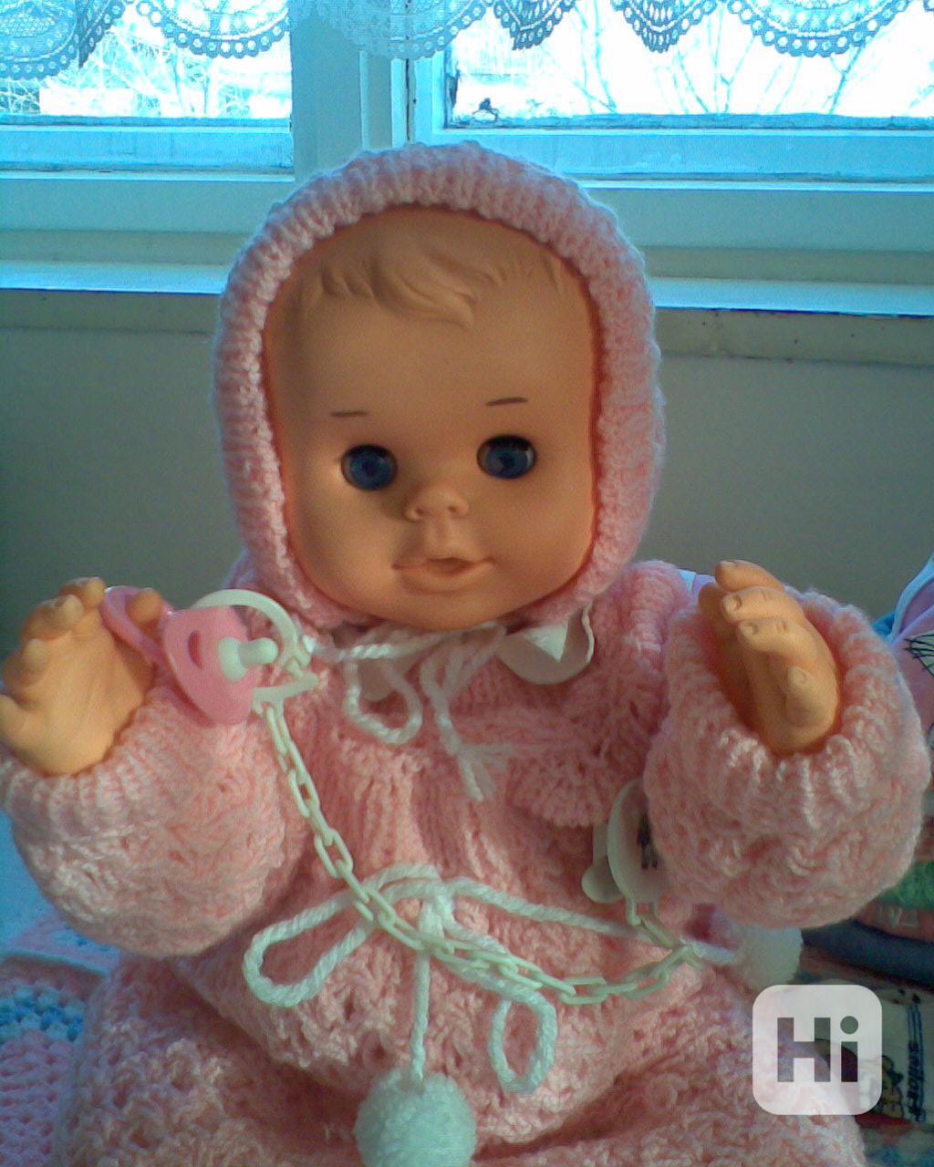 jako nová mrkací, plačící, čistá panenka PC 1100,- v novém oblečení, botičky, deka, sada s nočníkem, lahvičky jedna s bonbonky zdarma a druhá nová mluvicí, chrastítko, dudlík na řetízku, možno přidat hromádku nového oblečení na převlékání 500,-
