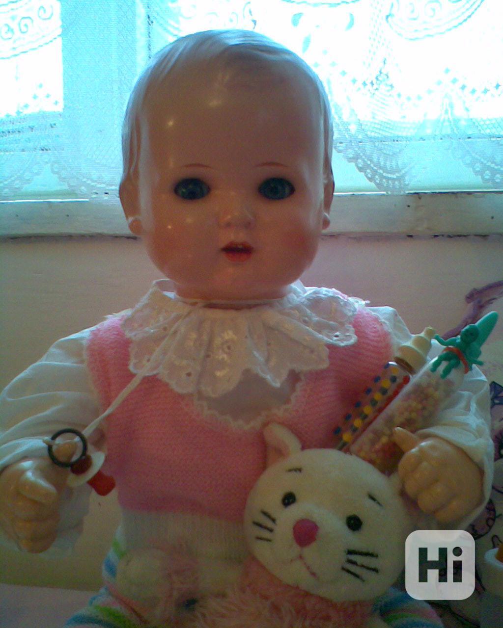 celuloidní krásná panenka 42cm s chrastítkem a lahvičkou, kočičkou, možno přidat zavinovačku 1000,-
