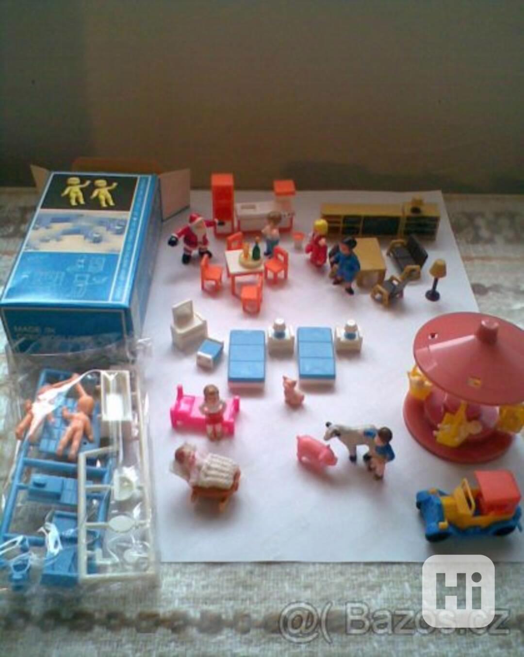 kolotoč není, nehraný maličký nábyteček s panenkami přidáním Santy, zvířátky, autíčko, kolébka, cenu navrhněte, PC 6800,-