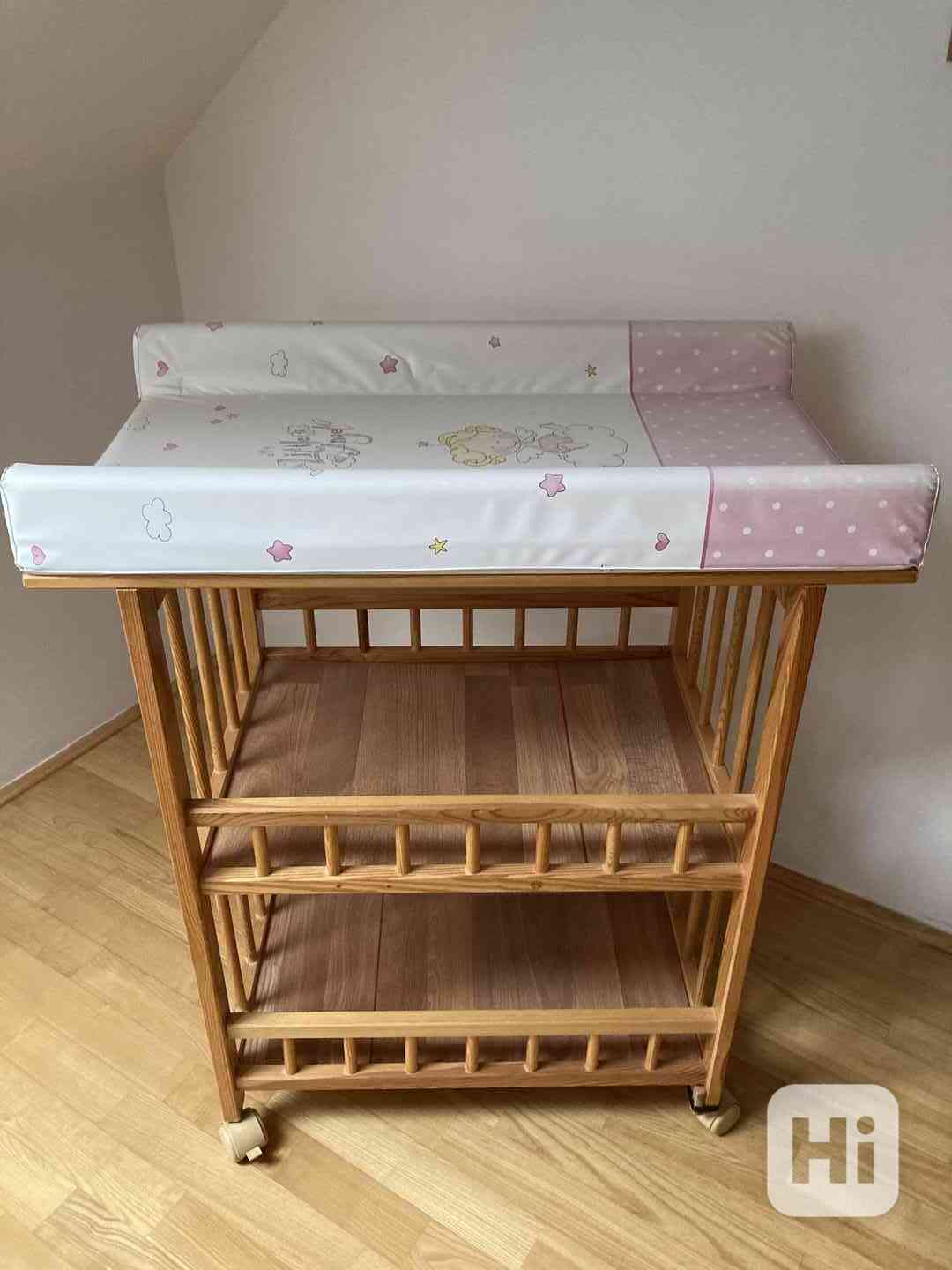 Zánovní přebalovací pult z lakovaného dřeva včetně měkké podložky. Rozměry: 48 x 80cm , výška 90cm