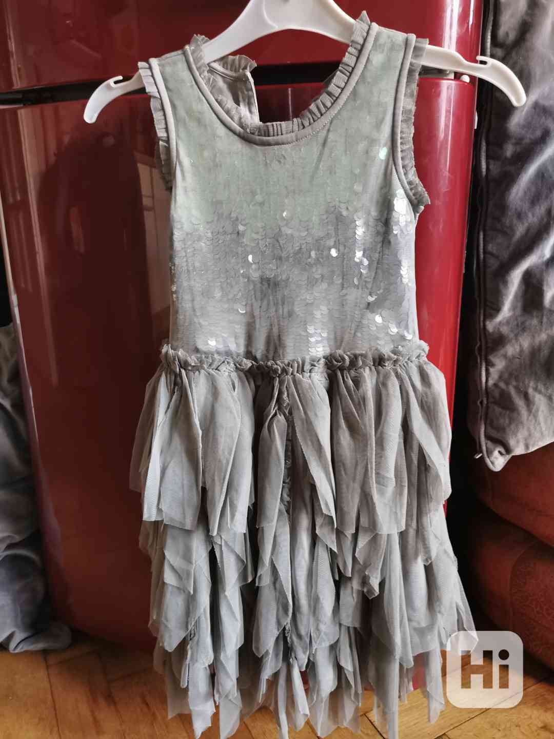 Šatičky vel. 116 značky Next, barvy šedé se třpitícími šupinkami pod šifonem. V zachovalém stavu bez vad.