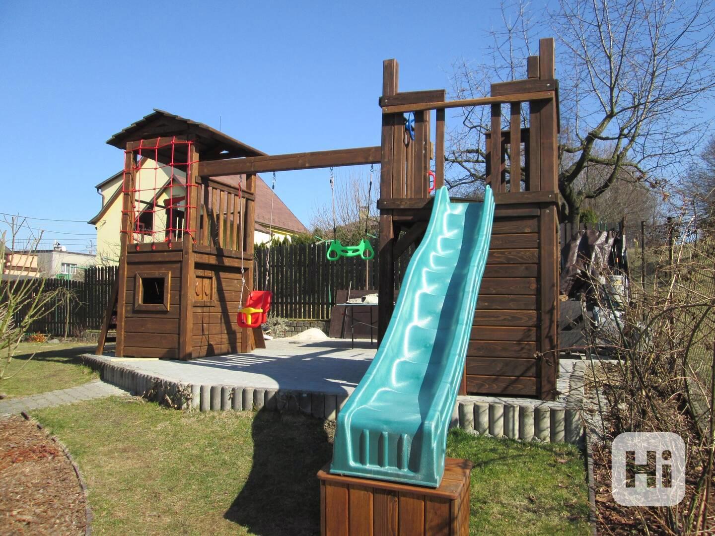 poctivé dětské hřiště,masivní materiál KVH hranoly 12x12 cm horní břevna 10x20 cm nosnost až 300 kg,veškerá hřiště bez nutnosti kotvit,žádné marketové hezky nafocené špejle,začepované schůdky ,závitové tyče pro pevnost a stabilitu , doplnky pískoviště i domečky