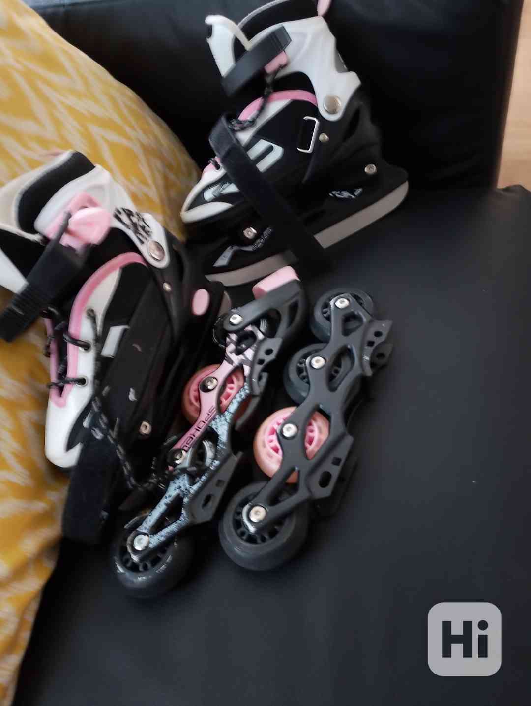 Prodám brusle pro holčičku S (30-32) Spokey používané, ale zachovalé, rostoucí. Mají kvalitní kolečka a šikovné pásky.